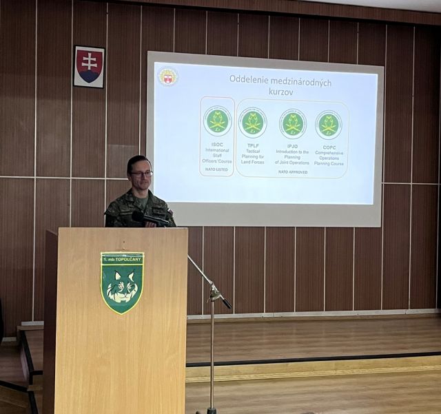 Veliteľské zhromaždenie veliteľa 1. mechanizovanej brigády Vo štvrtok 4.decembra 2025 sa v priestoroch posádkového klubu Jaselských kasárni v Topoľčanoch uskutočnilo Veliteľské zhromaždenie veliteľa 1. mechanizovanej brigády (ďalej len „1.mb“), na ktorom sa zúčastnili funkcionári veliteľstva 1.mb, velitelia a hlavní funkcionári priamo podriadených útvarov. Úvod veliteľského zhromaždenia patril podplukovníkovi Chovancovi, ktorý odprezentoval systém vzdelávania Akadémie Ozbrojených síl v Liptovskom Mikuláši. Bezprostredne po ňom vystúpil podplukovník Hudec z Veliteľstva Pozemných síl Ozbrojených síl Slovenskej republiky, ktorý zúčastneným priblížil modernizačné projekty v Ozbrojených silách Slovenskej republiky a kapitán Pešlo v krátkosti objasnil Spôsob plánovania a tvorby zásob pre obdobie krízovej situácie. Následne za účasti náčelníka štábu Veliteľstva Pozemných síl Ozbrojených síl Slovenskej republiky plukovníka generálneho štábu Róberta Funtaľa vykonal veliteľ brigády brigádny generál Štefan Acsai vyhodnotenie splnenia stanovených úloh 1.mb za II. výcvikový rok výcvikového cyklu október 2023 až september 2025. Svoju prezentáciu zhrnul do štyroch línii, v rámci ktorých zhodnotil uplynulé výcvikové obdobie, hlavné línie úsilia a s tým spojené stanovené ciele 1.mb pre II. fázu výcvikového cyklu október 2023 až september 2025. Po veliteľovi brigády vystúpil náčelník štábu Veliteľstva Pozemných síl Ozbrojených síl Slovenskej republiky plukovník generálneho štábu Róbert Funtaľ, ktorý poďakoval veliteľovi brigády za vyhodnotenie úloh. Svoj príhovor zameral na vytváranie vhodných podmienok pre profesionálnych vojakov, úroveň operačnej pripravenosti či infraštruktúru. Zároveň poďakoval za splnenie náročných úloh nielen zúčastneným, ale i všetkým príslušníkom 1.mb. Súčasťou programu bolo aj odovzdanie disciplinárnych odmien vybraným profesionálnym vojakom za kvalitnú prípravu a vzorné plnenie úloh, ktoré udelil veliteľ brigády. Na záver veliteľského zhromaždenia veliteľ 1.mechanizovanej brigády predstavil zámer výcviku na I. výcvikový rok výcvikového cyklu október 2025 až september 2027. Touto témou bolo veliteľské zhromaždenie veliteľa 1. mechanizovanej brigády ukončené.